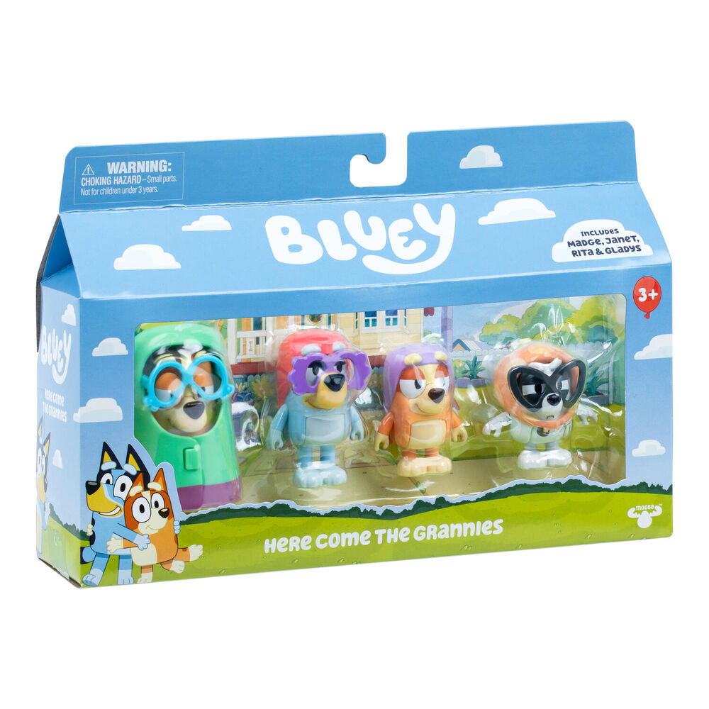 - The Grannies Figure 4-Pack includes Madge (Chilli), Janet (Bluey), Rita (Bingo), and Gladys (Muffin).