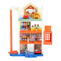 Bring home the fun of the hit TV show Bluey with the Bluey Hammerbarn Shopping Playset! This exclusive playset stands at a huge over 56cm tall and comes with exclusive figures - Hammerbarn Bluey and Shopping Bingo. Your little ones will love exploring the 9 different play areas loaded with fun features in this enormous playset. There is a real working lift to place Bluey and Bingo in so they can ride up and down to the 4 different levels. Plus your kids will love using the Shopping Trolley Return to watch the trolley spin around as it returns to the ground floor! With plenty of lights and 45+ sound effects, this playset brings the action to life! There is a whopping 15 play pieces included in the set and heaps of stickers to decorate the Hammerbarn with.
