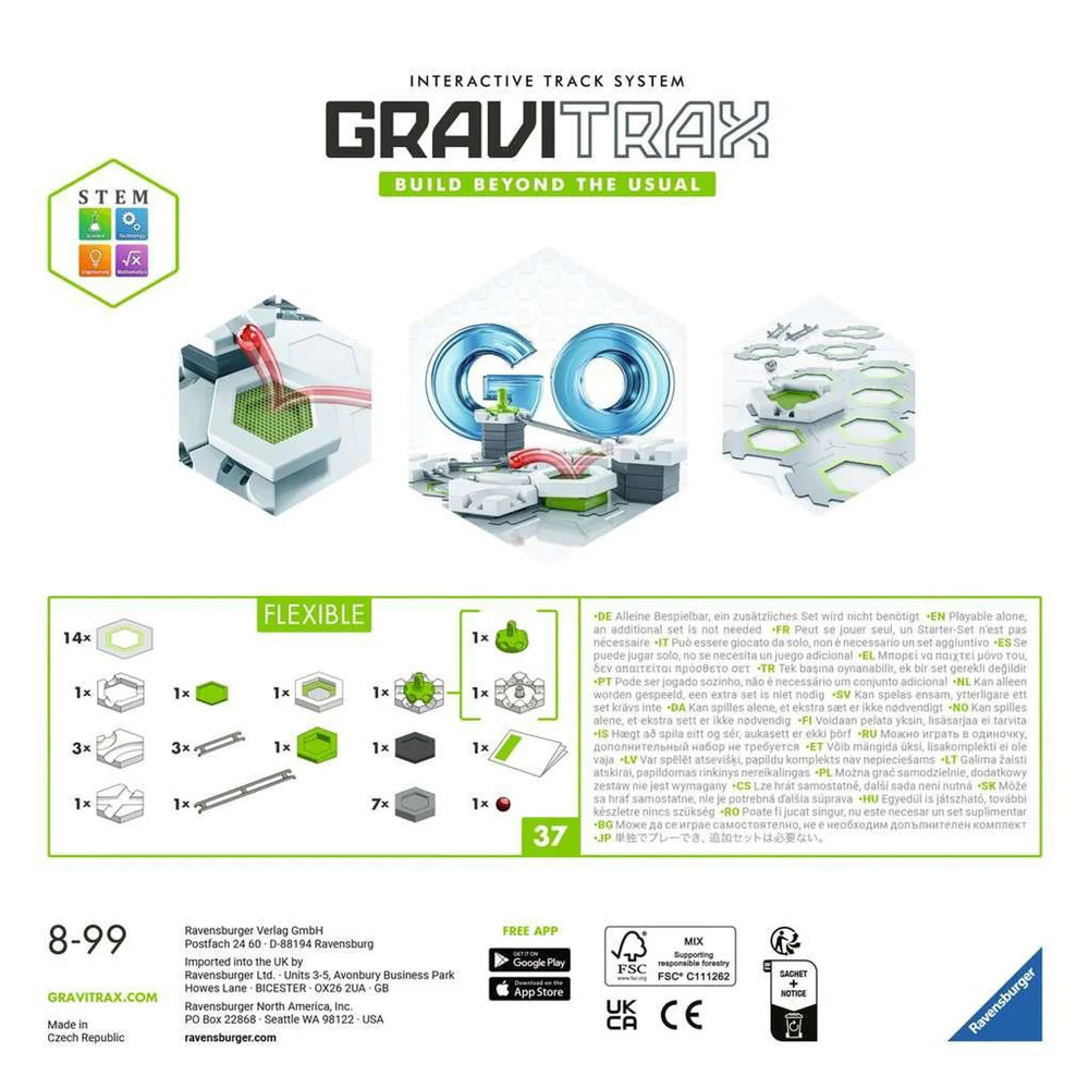 GO Flexible is made for beginners to get to know the GraviTrax universe - just unpack and get started. Can be combined with all GraviTrax products.