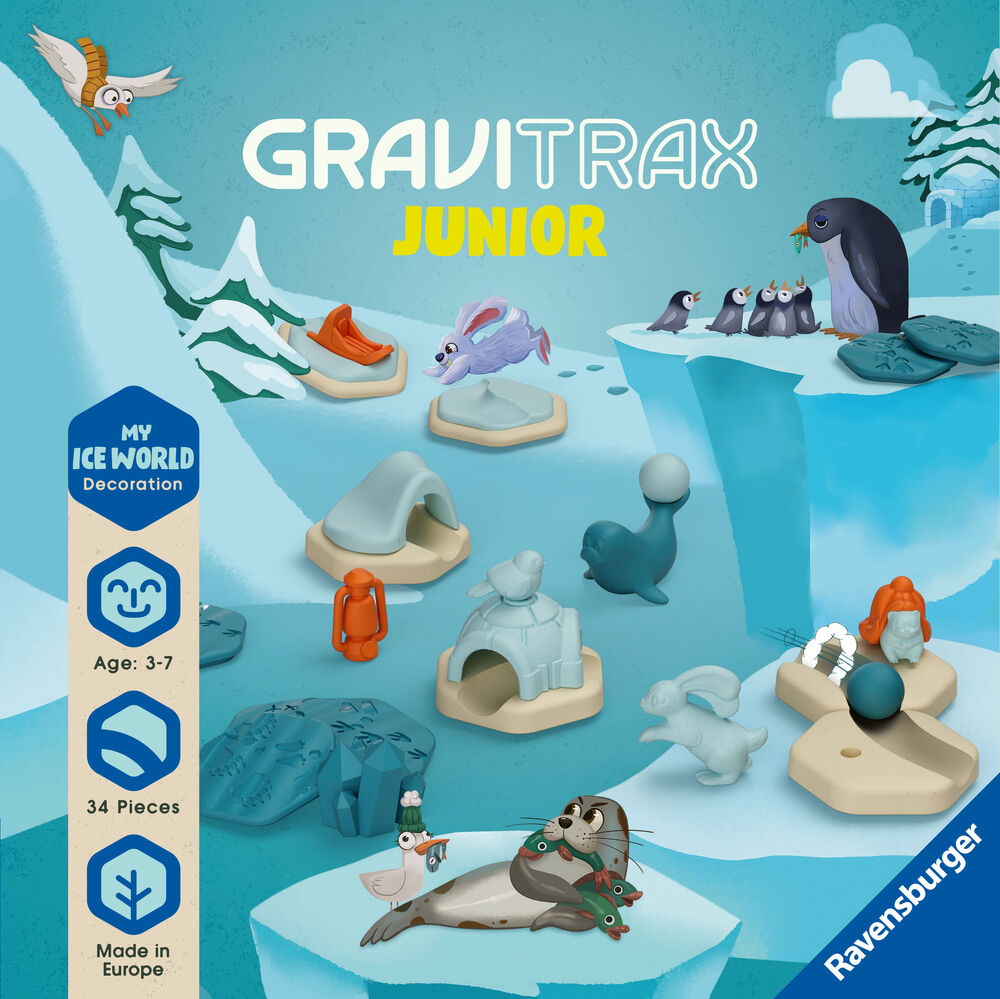 Expand your GraviTrax Junior setup with the Extension Ice, featuring unique ice-themed components that introduce new dynamics and challenges to your marble tracks. Designed for young enthusiasts aged 3 to 7, this expert-level add-on encourages creative problem-solving and strategic engineering skills through innovative, themed elements. The set includes animal and snow accessories representing the ice world, along with a base plate, balls, and additional track tiles. Fully compatible with GraviTrax Junior Starter Sets, it enhances the building experience by allowing children to create ice world stories and develop STEM skills in a playful, interactive environment.