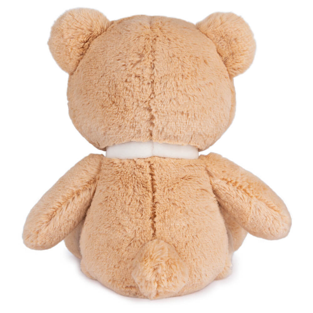 Introducing GUND's new line of first soft friends, sustainably sourced from 100% recycled materials! This sweet pale tan-coloured eco bear from GUND is not only soft and cuddly, it is crafted from 100% recycled materials. Each friend is crafted with luxe, ultra-soft recycled plush, recycled thread including embroidery, plastic fibre fill and sustainable packaging. It's GUND's gift to future generations of cuddlers! Packaging is made from recycled materials - a paper hangtag & cord, recycled sewn in label, packaging in a post consumer polybags.