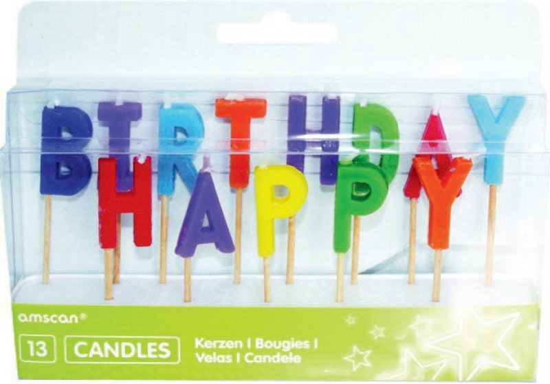 Happy Birthday Pick Candle Assorted Colours 13 Pieces