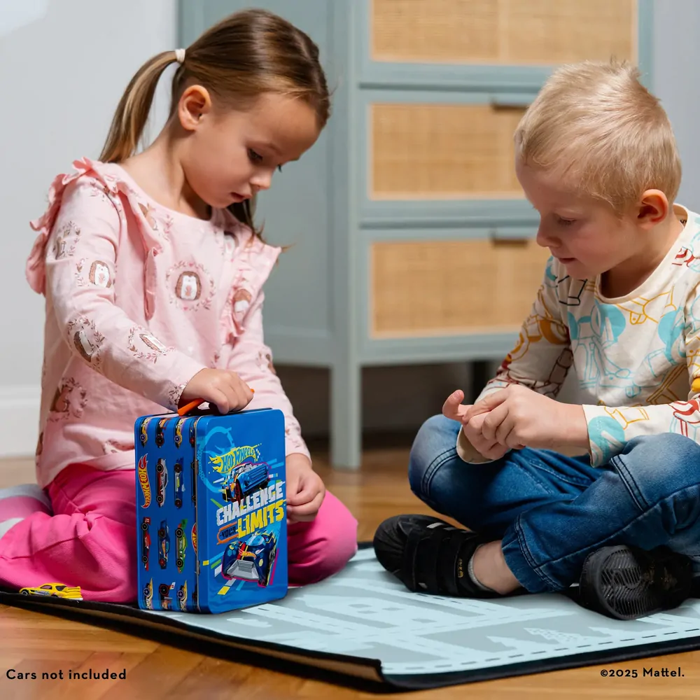 Sometimes ending the game is just as fun as starting it! When little hands get tired of racing, when the streets and racetracks in the nursery are still hot from the thrilling rides with the Hot Wheels, it's time for the big parking and cleanup. Then each race car goes back to it's box. The Hot Wheels Collector's case contains 18 boxes, where each car finds its own place and can rest and recover for the next race. Should the racing circus move on and the cars are needed elsewhere, the case can be quickly packed up using the practical carrying handle and taken to the racing hotspots.