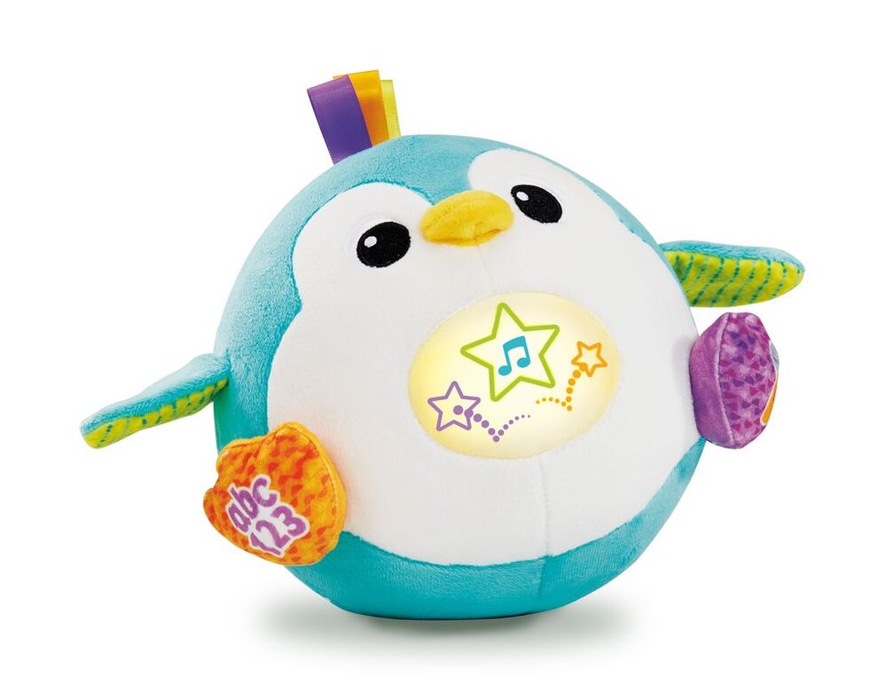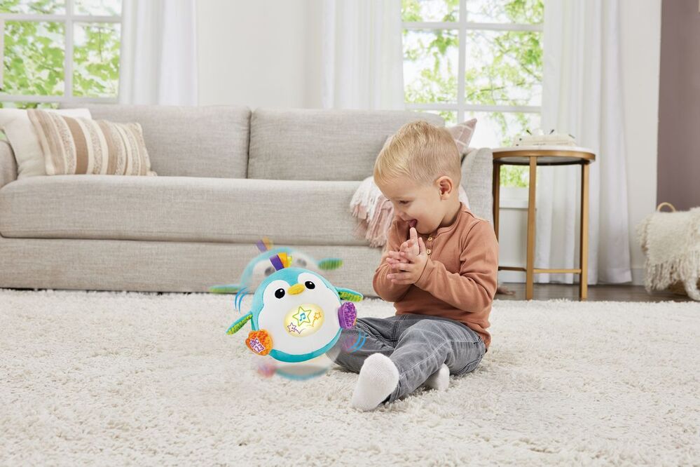 Meet the 123 Bounce with Me Penguin—a playful friend that brings learning and laughter to life! This cheerful penguin bounces with joy whenever your child talks, claps, or makes a sound, encouraging active play and movement. As little ones crawl or reach to catch it, they build gross motor skills while staying engaged. With fun songs and phrases, Penguin introduces letter sounds and counting, turning playtime into a learning adventure. Kids can even record a message and hear it back in a funny voice, adding extra giggles. Interactive, educational, and full of energy, this penguin makes every playtime exciting and joyful!