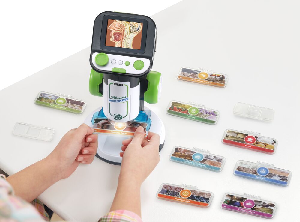 - Clip the eight included smart slides under the microscope lens to see 220+ custom BBC videos and images.