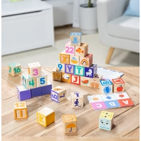 Littles can practice speech, turn-taking, social and emotional skills, and more, with 26 embossed blocks to help kids identify letters, numbers, colors and objects, 4 activity blocks, and so much more.