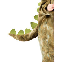• Jumpsuit features an attached plush head with fibre filled 3D dinosaur facial features and felt triangular scales from head to tip of tail