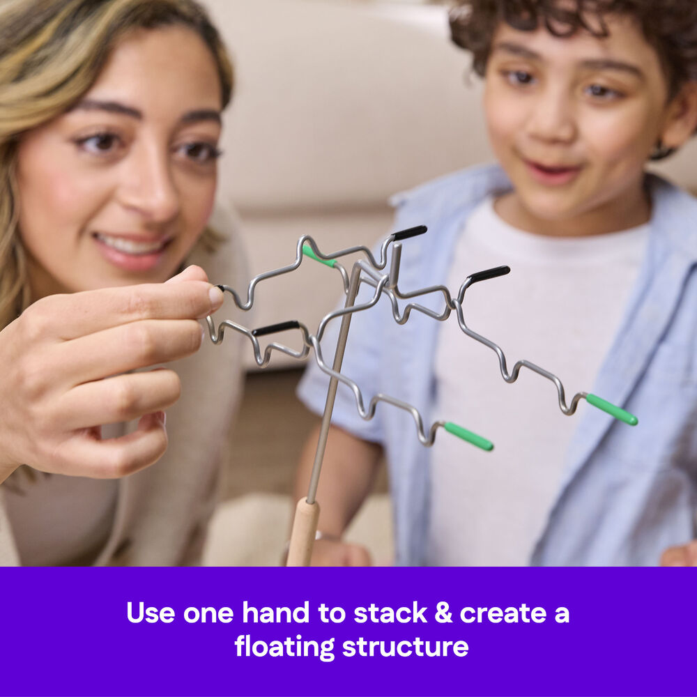 - Take on the exciting balancing game of tricky hangs & steady hands. Place a rod & add to the suspension – just don’t knock it down. Successfully hang all of your rods to win.