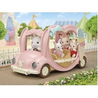 The Ice Cream Van set contains over 30 colourful and delicious-looking ice creams and accessories. The ice cream van has a pastel pink colour and a charming rabbit design. Serve the ice cream scoops in the cones and add chocolate toppings. The chocolate toppings are in the shape of adorable animal ears! The toppings come in different shapes, so you can make rabbit, cat, or panda-themed ice creams! The ice cream cones can be held by the figures. The driver's seat can be removed and used as a bench. The display case can be flipped around and used as a seat! The van can also be used as a four-seater vehicle. Remove the display case to tidy the accessories away underneath.