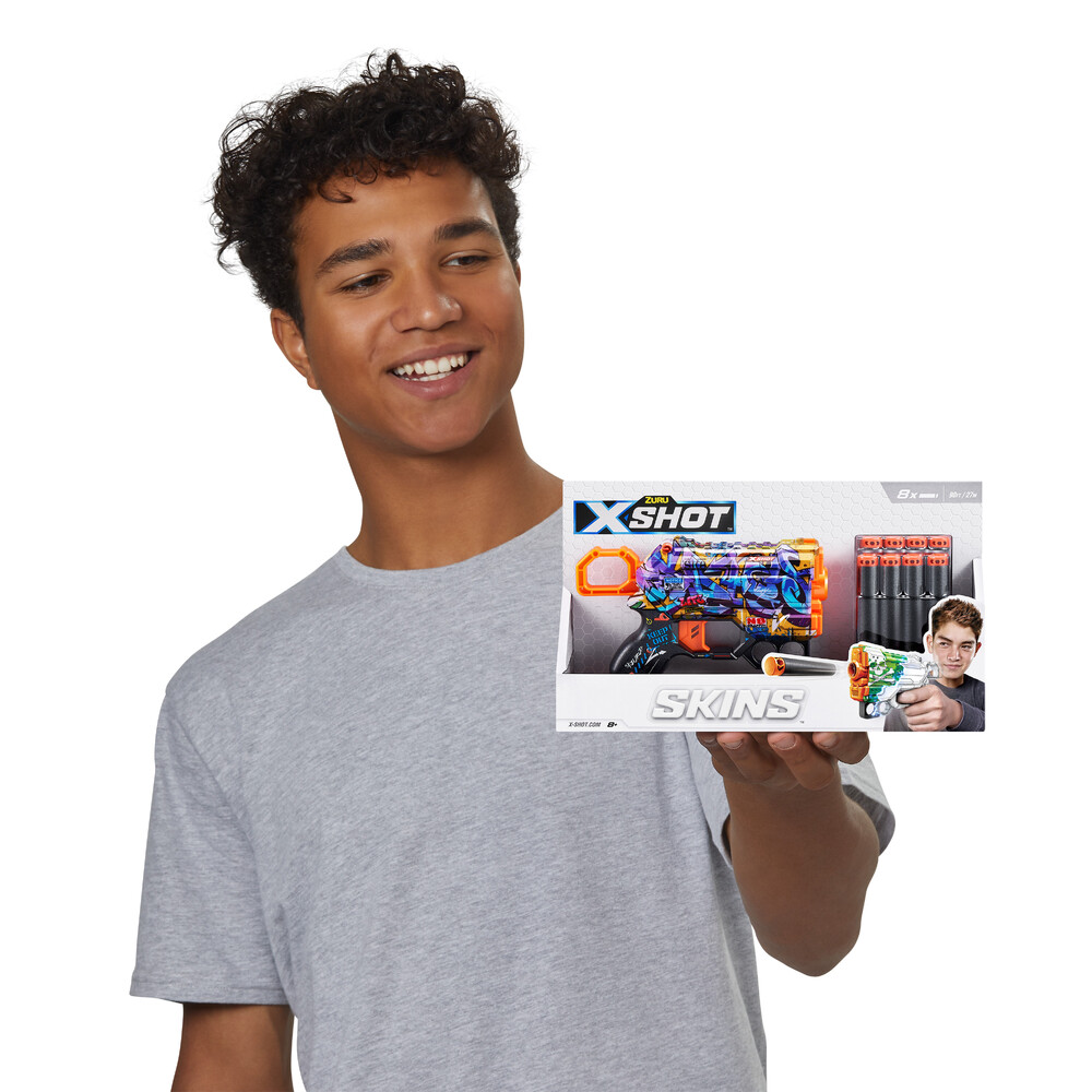 - X-Shot Skins brings the in-game experience of skinning your blaster into the real world, choose your Spray Tag Skin and join the battle.